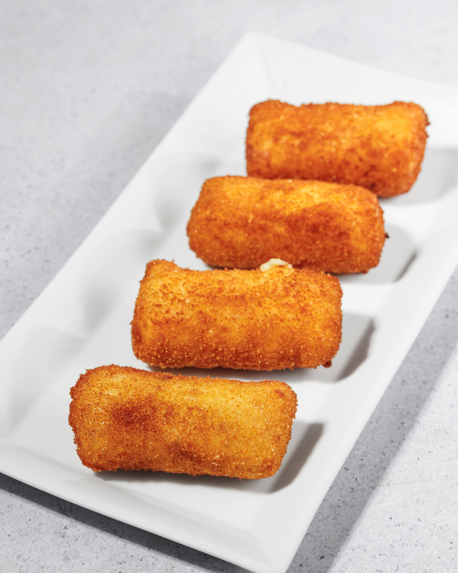 Nuestras croquetas de jamón cocido y huevo, son un producto artesanal que elaboramos a diario en nuestro obrador. Croquetas con nuestro jamón cocido, huevo y fina bechamel, envueltas en pan rallado.