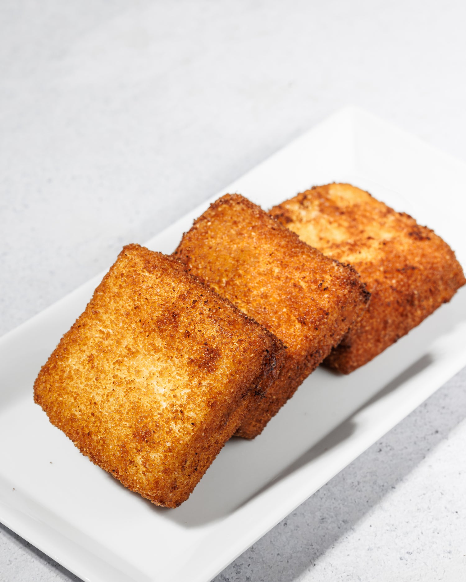 Nuestros jacobitos de jamón y queso, son un producto artesanal que elaboramos a diario en nuestro obrador. Jamón cocido y queso fundido, rodeado de una fina bechamel, envueltos en pan rallado.